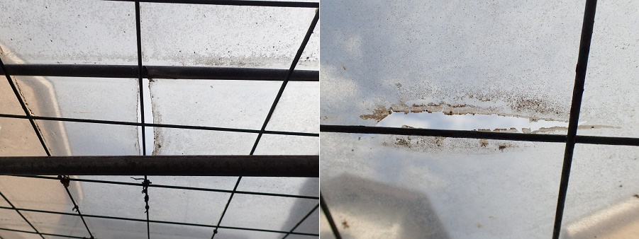 25.4.5.  屋根のビニールシートが夏の日差しにより熱くなった鉄格子の熱で溶けて破れので、ビニールシートの張り直しが必要 25.4.19.  新葉展開