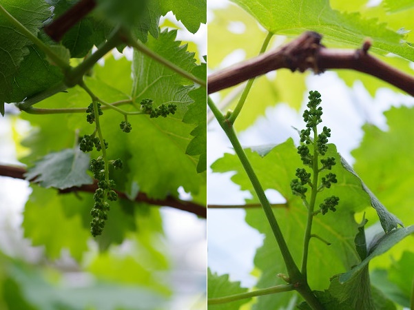 22.5.15.  開花1週間ぐらい前の「房作り」を行いました 22.5.28.  花が咲き、ほぼ満開状態です。ジベレリン処理1回目を実施しました。