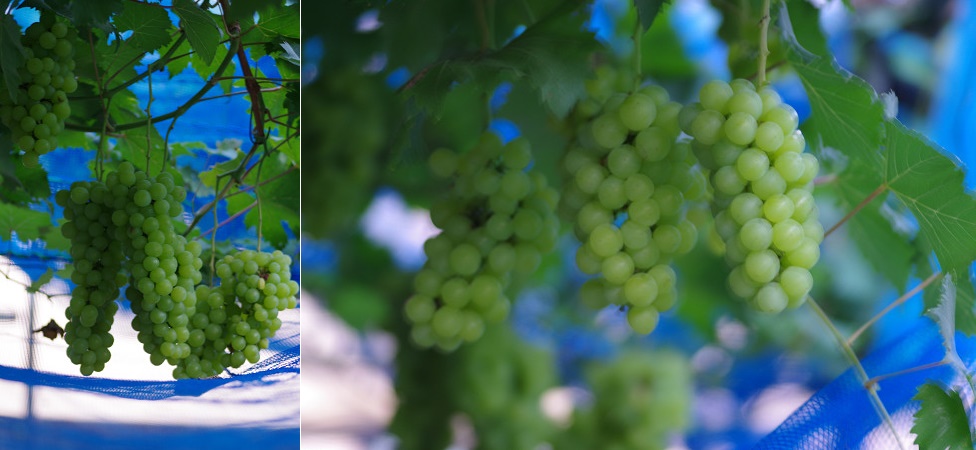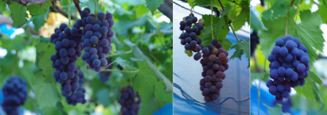 摘房・房づくり ジベレリン処理 摘粒・袋かけ 殺虫剤・殺菌剤 接ぎ木 挿し木 栽培品種:高妻、巨峰、ピオーネ、多摩ゆたか、M.O.アレキサンドリア 土壌の適正pH:6.5〜7.5