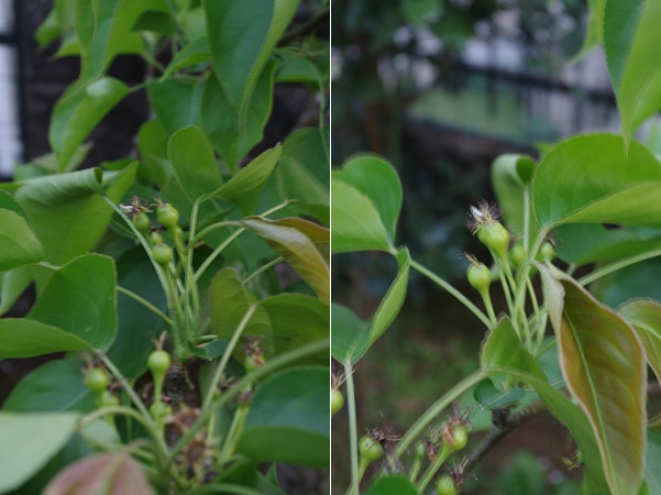 まだ小さいながら形は梨らくなっている。 摘果は控えめにして様子見です。
