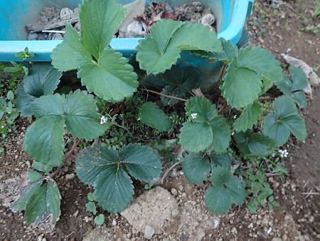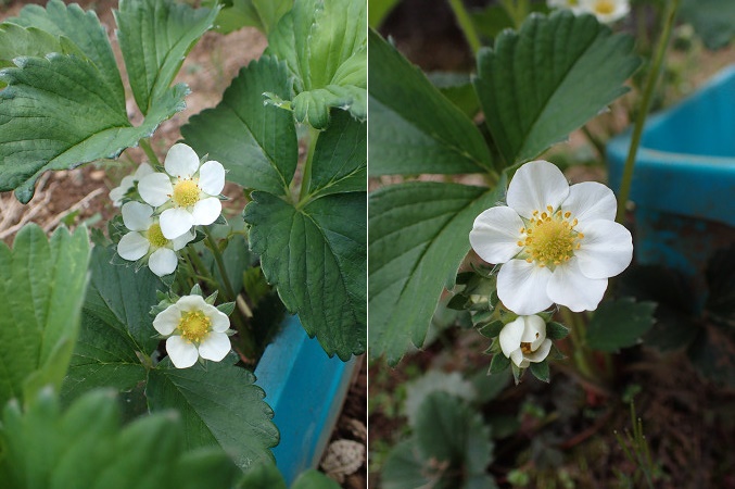 22.4.2. 手が回らず放任状態となってしまったイチゴですが花が咲き始めました |
